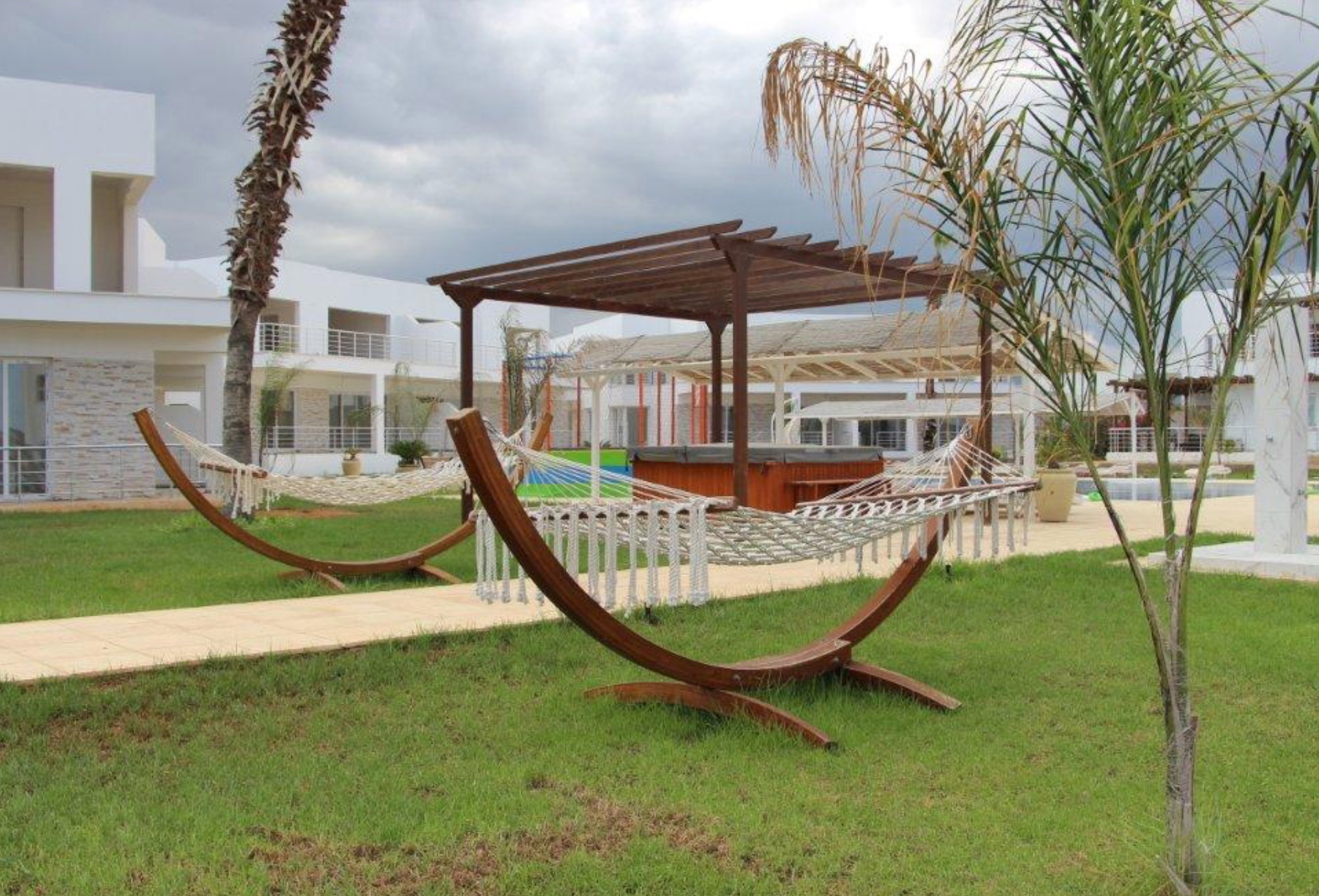 Комплекс с развитой инфраструктурой расположен на берегу моря с песчаным пляжем.
