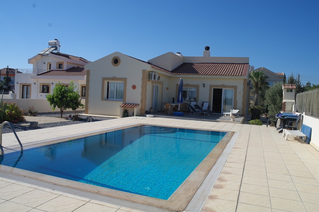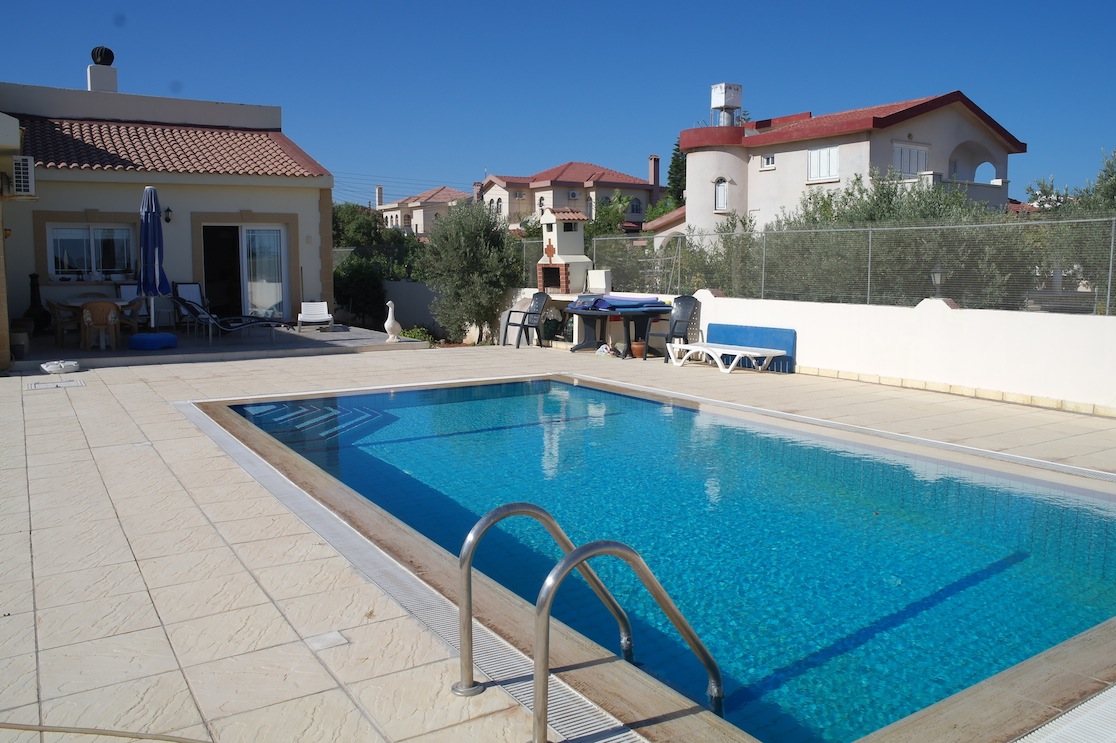 Продается вилла в туристической зоне Салямис в 500 метрах от античного города, 700 метрах от моря и 4 км от г. Фамагуста. Вилла расположена на участке 700 кв.м. Площадь дома 200 кв.м. Площадь бассейна 8х4 метра. Вилла построена в традиционном киприотском стиле. Обладает просторными и светлыми помещениямию. 3 спальни. Площади спален 23, 18 и 16 кв.м. соответсвенно. Столовая зона и кухня имеют площадь 23 кв.м. Оборудованы всей бытовой техникой, также есть камин и система кондиционирования. Титул: обменный. Цена: 165 000 фунтов.